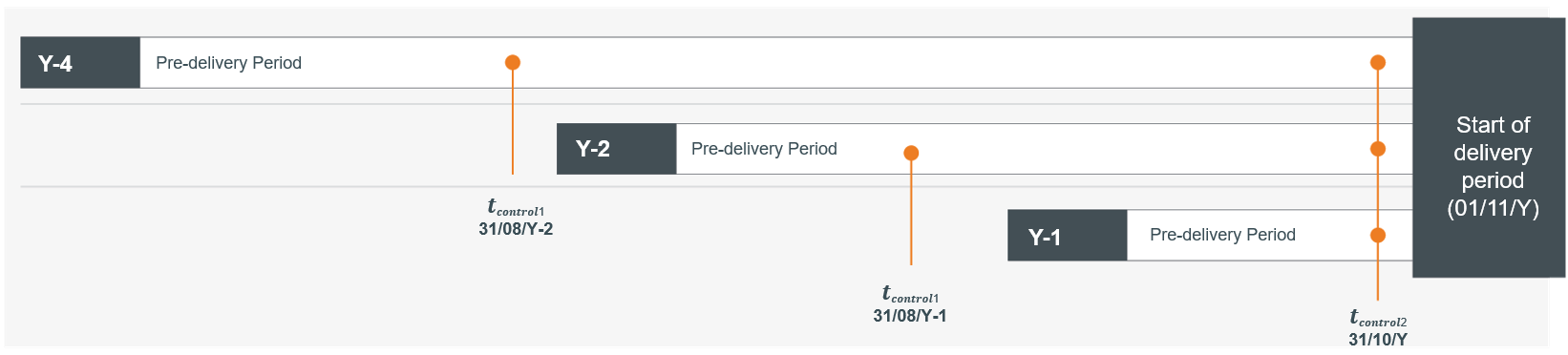 - Y-4: tcontrol,1 takes place on August 31 Y-2 and tcontrol,2 takes place on October 31 Y
