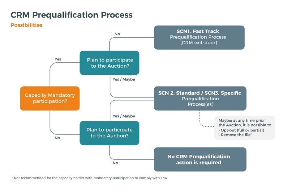 Bestaande en Additionele Capaciteiten moeten de Standaard Prekwalificatieprocedure volgen om deel te nemen aan de CRM.